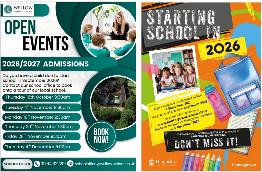 If your child is due to start school for the first time, you will need to make an application to Hampshire County Council at www.hants.gov.uk/admissions.